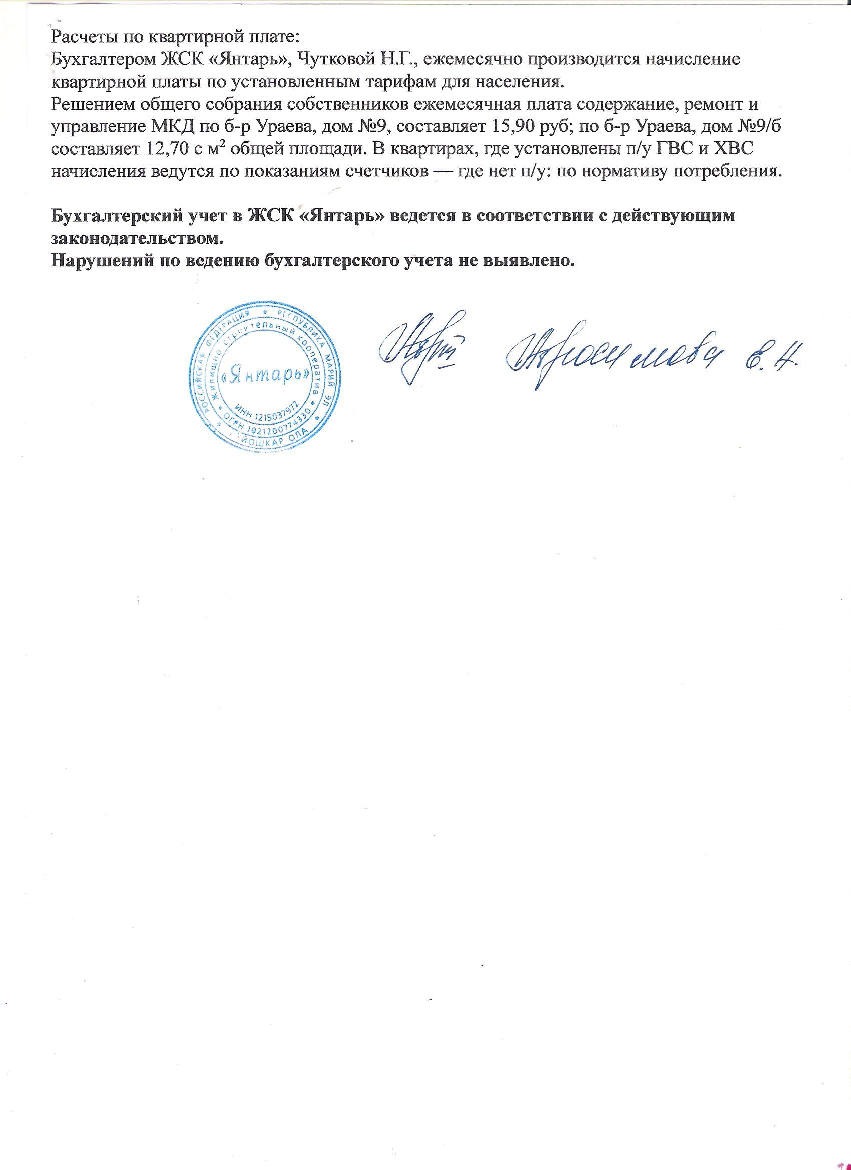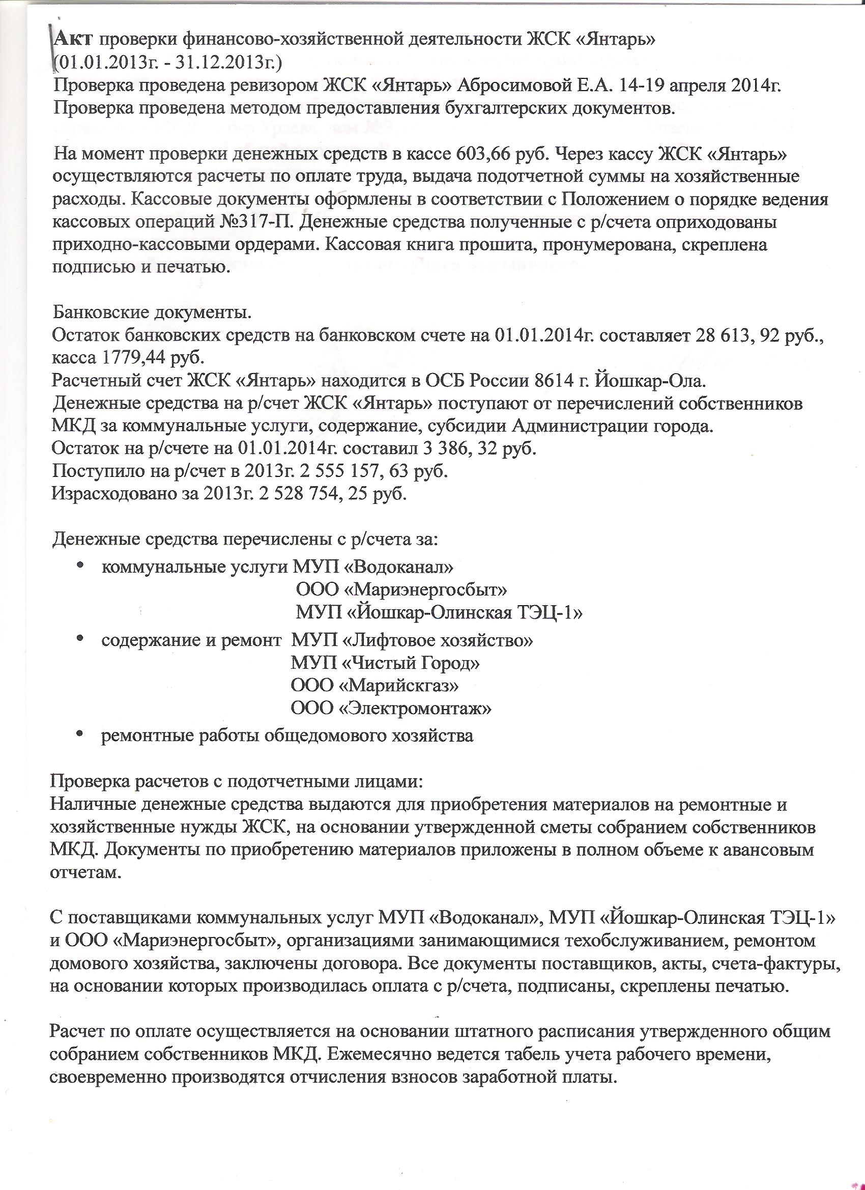 Акт проверки финансово-хозяйственной деятельности ЖСК "Янтарь"(01.01.2013 г. - 31.12.2013 г.)