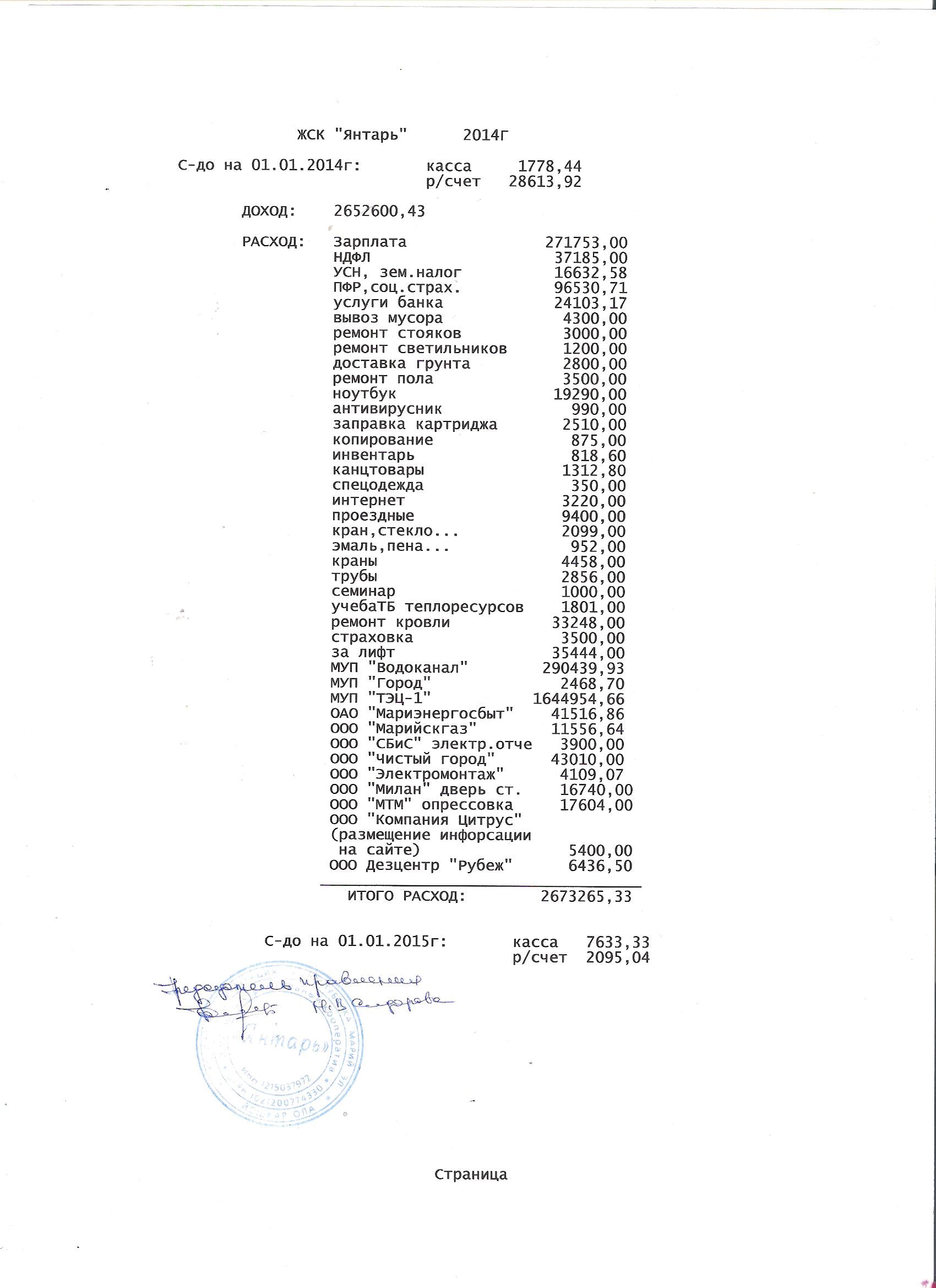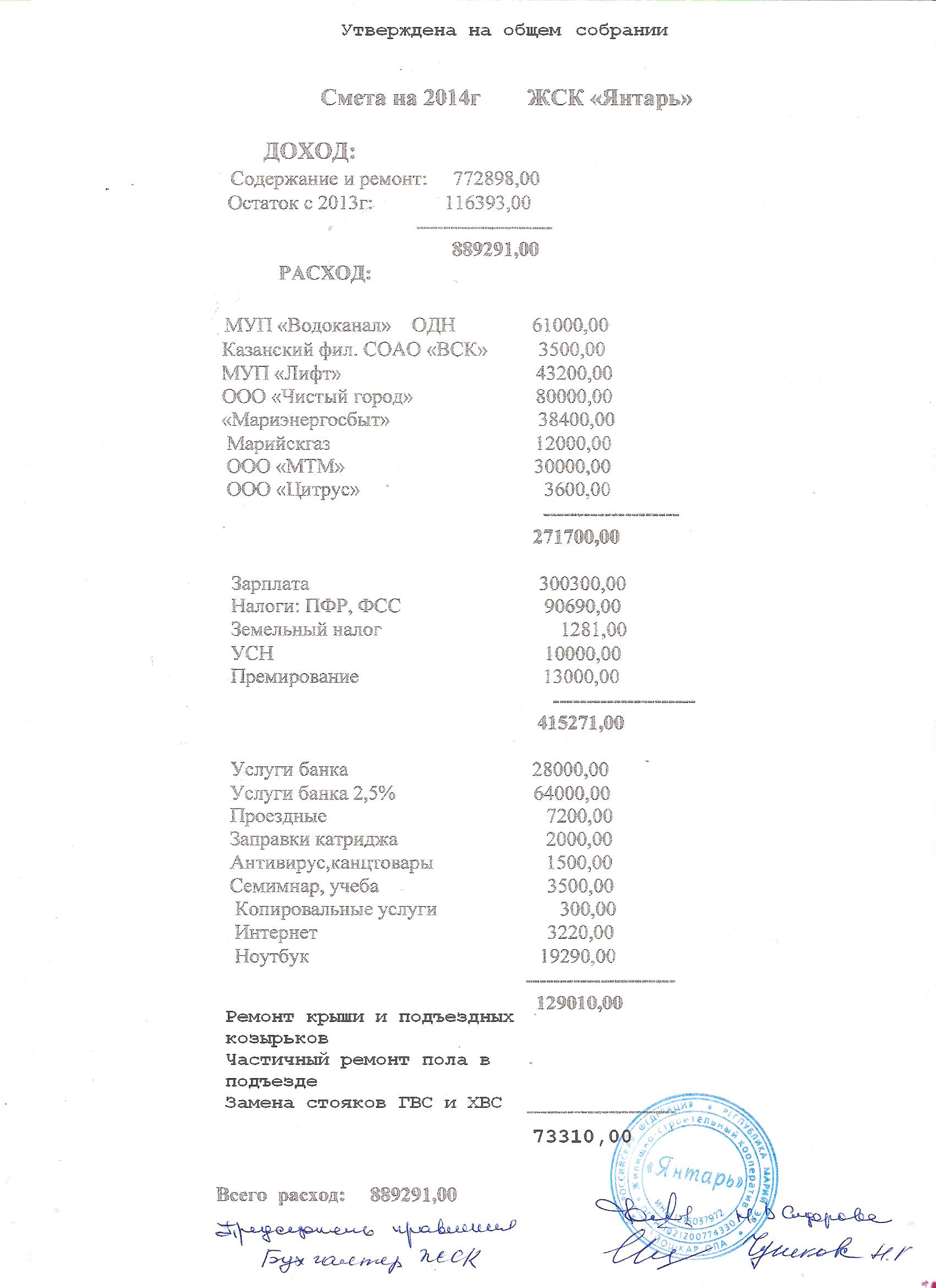 Смета на 2014 год ЖСК "Янтарь"