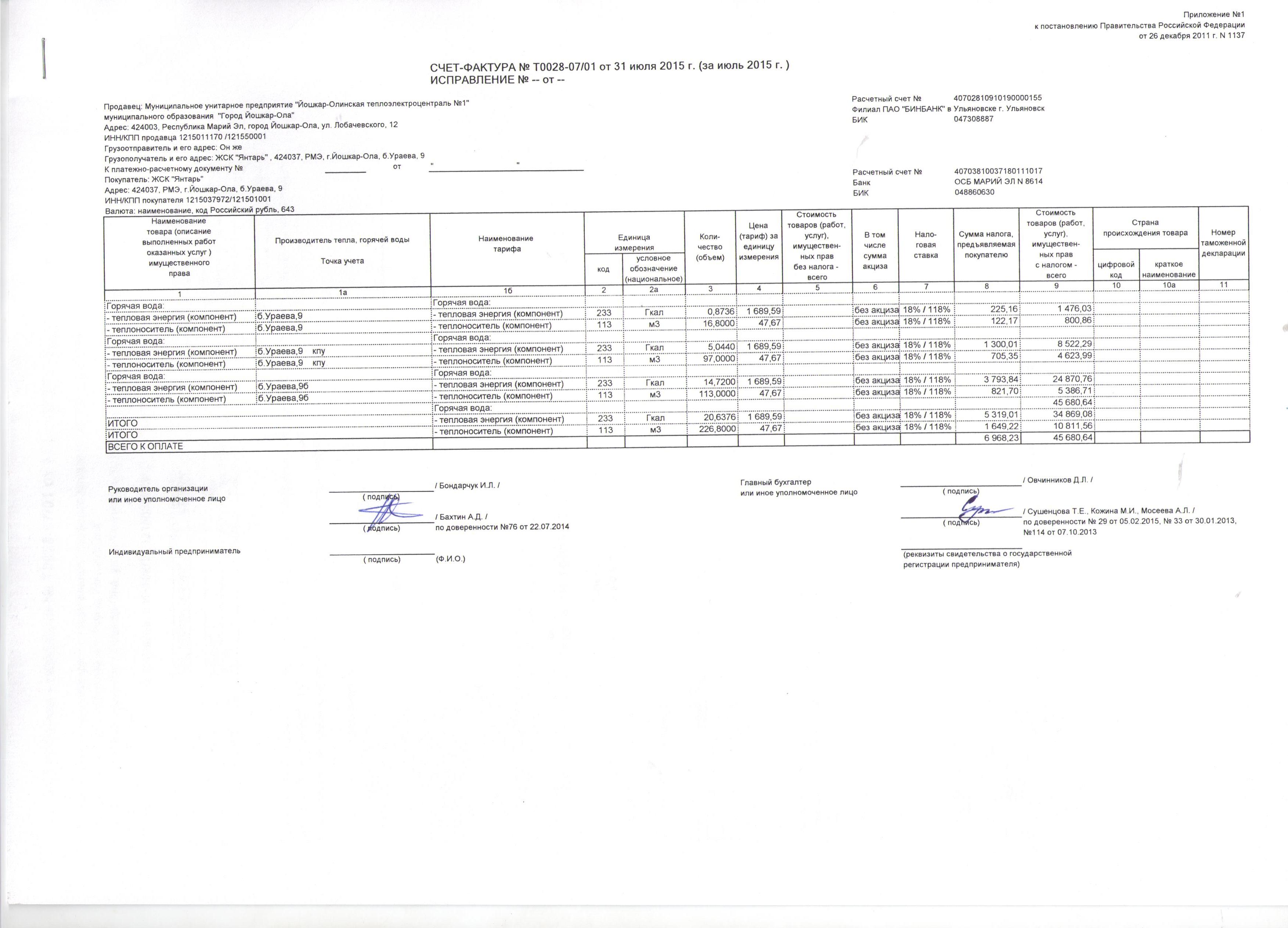 Счет-фактура №Т0028-07-01 от 31.07.2015 г.