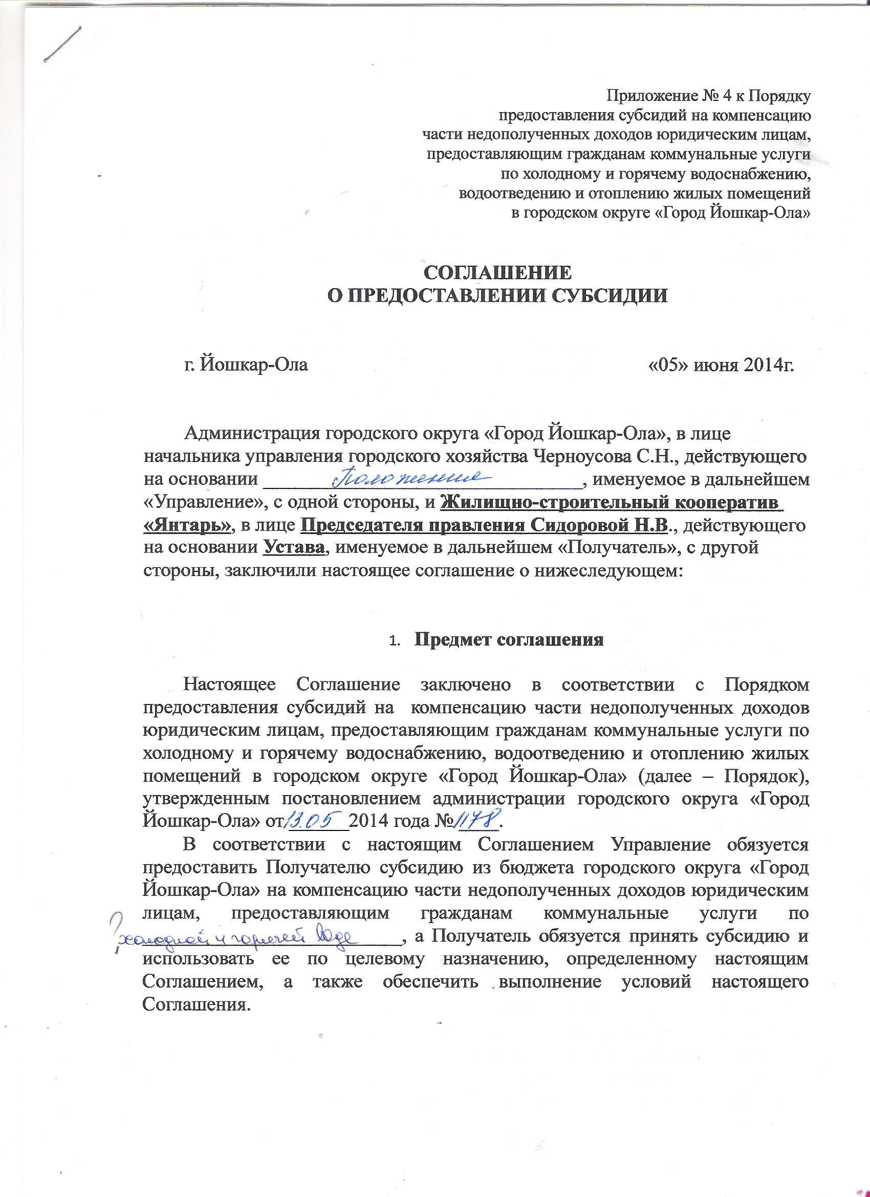 Соглашение о предоставлении субсидий